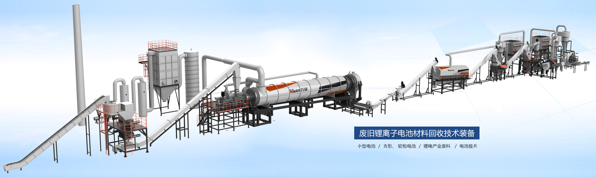 廢舊冰箱無害化處理及資源回收設備 報廢汽車車身破碎分選及廢鋼加工一體化設備 極片物理回收打粉生產線 鋰電池產業廢料熱解系統 廢舊鋰電池連續化熱解綜合回收一體化系統 報廢汽車預處理及精細化拆解設備 廢輪胎破碎分選預處理設備 破碎單機系列設備 大件垃圾破碎分選設備